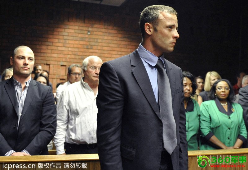 当地时间2013年2月19日,南非比勒陀利亚,“刀锋战士”皮斯托瑞斯出席枪杀女友案第二次庭审。(图片来源:东方IC)